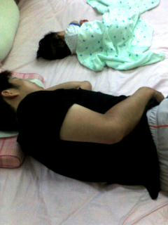 ついに夜泣きかしら…。 確か先月もそんなことがあって1週間くらい寝不足だったような。 今晩はどうかなぁ…。 寝て欲しい…。 さて今日も相変わらず匍匐後退なしんちゃんですが、 面白いことになってたので激写! 敷布団の下にはさまってます…。 それってどうなのよ…? 楽しそうだからいっか…。 スリング布教中今日は妹に2本目の手作りスリングをおしつけに行ってきました(苦笑)。