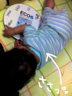 相変わらず起きている時には 疲れると「戻せ~ヽ(`Д´)ノウワァァァン!!」 とかやってるしんちゃんですが、 私、一昨日の夜見ました…。 寝返りで行ったり来たりしているしんちゃんを! そんなわけで、もう煎餅屋は閉店でいいと思います………(・∀・)。 団扇様々昨日今日とちょっとぐずぐずのしんちゃんです…。