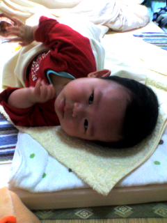 ツアー中は育児の大先輩(うちの母、旦那のお義母さん・母方の祖母) と育児のプロ(母の妹は二人とも保育園に勤めているのです…)の 抱き方・あやし方のテクを盗んできました(笑)。 …まぁ、実践できるかどうかは今からの努力にかかっております…。 そして、昨日で3ヶ月でした。 体重ははかってないけど、多分6キロ前後…。重いです…。 最近、急に手足が伸びたような気がします。 よく笑うようになりました…可愛い…←親ばか でも、いとこのあやちゃんの笑い声は「きゃは~☆」って可愛いんですが うちのしんちゃんは「へっ…」ってニヒル笑いなんですよ…。 男女の差なのか、固体差なのか…。 そして帰省中に育児のプロから「首すわってるやん(関西の人なので関西弁)」 と太鼓判もいただきました。 たしかにぐらっといかなくなったような気もします。 おんぶデビューは近い…でもまず実家でおんぶ紐の使い方聞いてこないと…。 そんな私が買ったのは昔ながらのバッテンおんぶ紐!! 腰痛・肩こりもちにはいいらしいと評判だったので通販しました。 家の中でしかおんぶしないだろうから、おっぱい強調でも気にしなーい! さぁ、育児が楽になると噂の100日まであと少しだ~!! 突然の進化スリング入れ旦那用スリングの入れ物を作りました。